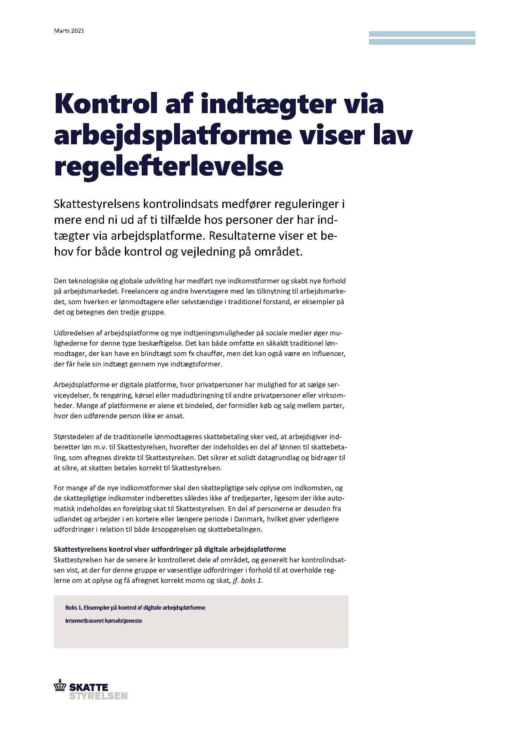 Kontrol af indtægter via arbejdsplatforme viser lav regelefterlevelse