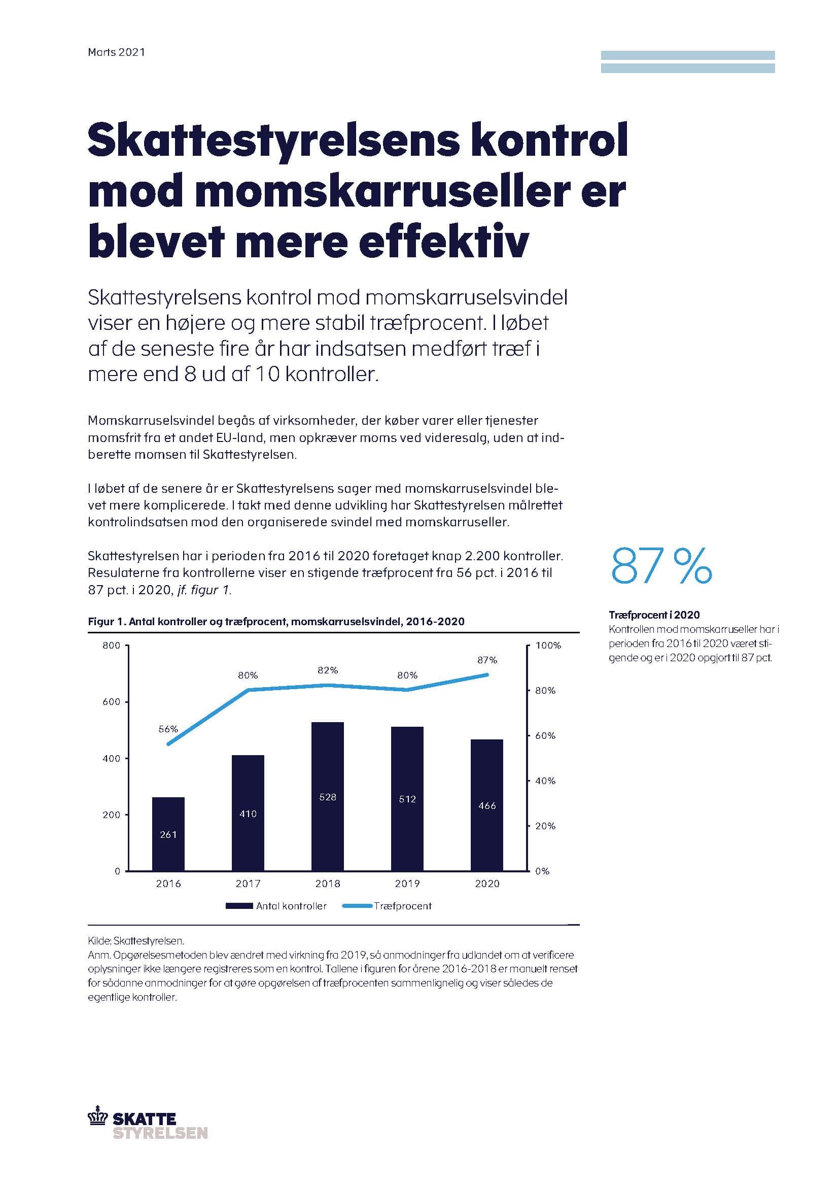 momsen til Skattestyrelsen. I løbet af de senere år er Skattestyrelsens sager med momskarruselsvindel blevet mere komplicerede. I takt med denne udvikling har Skattestyrelsen målrettet kontrolindsatsen mod den organiserede svindel med momskarruseller.
